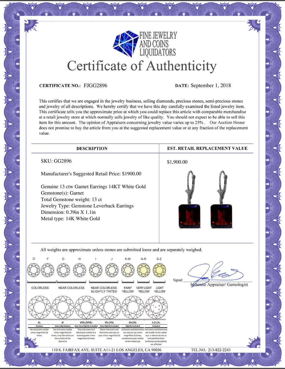 REF-61W8Y - SKU: GG2896 ---- Genuine 13 ctw Garnet Earrings 14KT White Gold