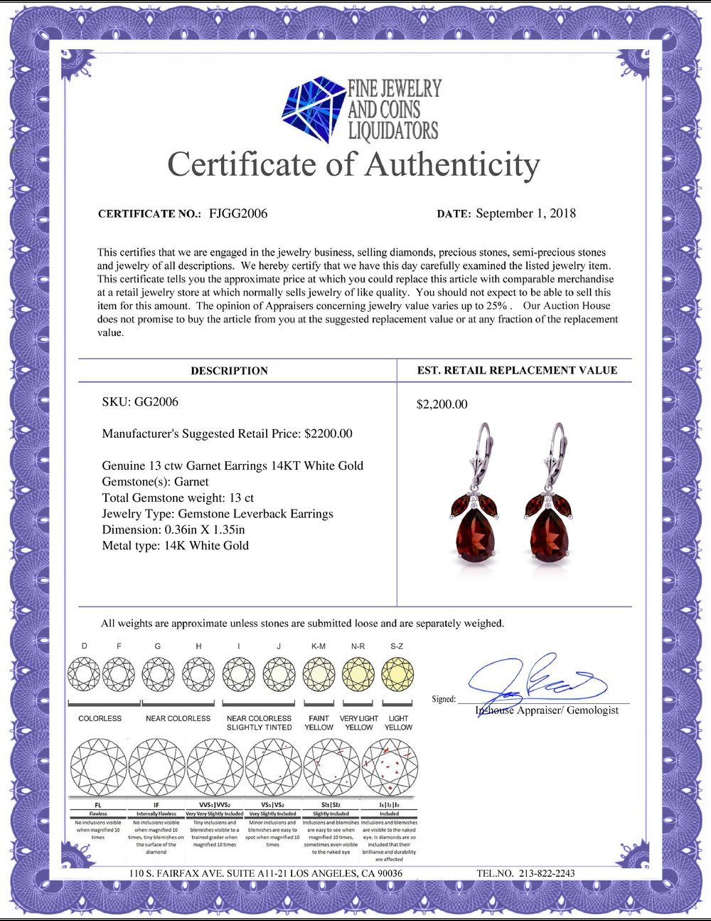 REF-71K8V - SKU: GG2006 ---- Genuine 13 ctw Garnet Earrings 14KT White Gold