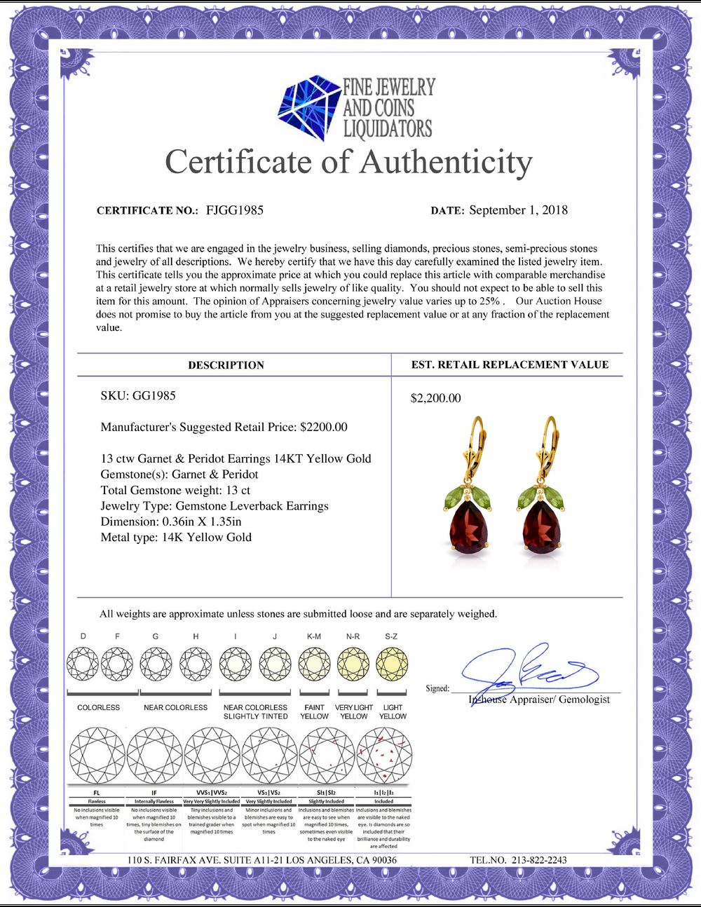 Genuine 14K Yellow Gold 13 ctw Garnet & Peridot Earrings