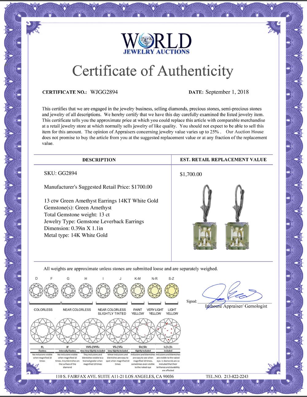 WORLD JEWELRY AUCTION believes to the best of its knowledge that the information presented in any listing has come from reliable sources. Such information is presented solely for the convenience of the Purchaser. WJA makes no warranties of any kind related to the information presented in any listing. WJA further makes no warranties, either express or implied, relating to the value, marketability or condition of the lot described in any listing. Prospective bidders should investigate a lot thoroughly before bidding. By bidding the Bidder acknowledges that Bidder has investigated the lot to his or her satisfaction, or, that Bidder has chosen not to do so, and agrees to accept the lot being bid on with no objections after the sale closes. If you are uncertain please contact us with your questions prior to bidding. If you are still uncertain after we reply, please refrain from bidding. Photos other graphic material contained in any listing of generic or duplicate lots may be stock presentations and not necessarily of the specific lot.