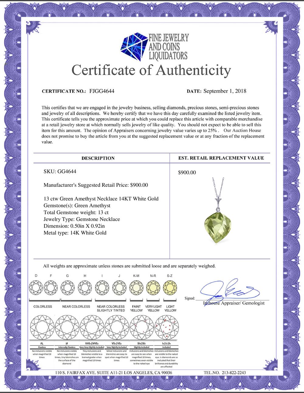 REF-28T2A - SKU: GG4644 ---- Genuine 13 ctw Green Amethyst Necklace 14KT Rose Gold