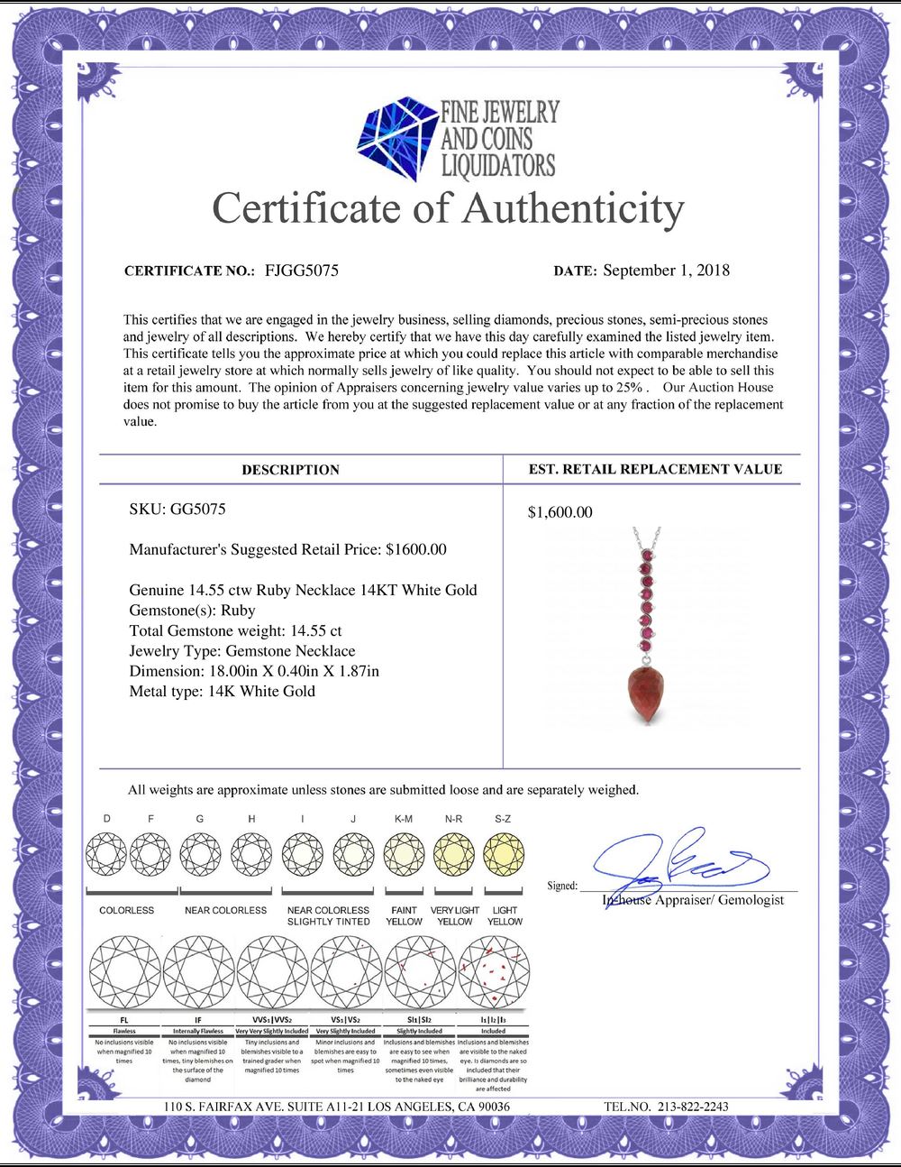 REF-52Y9F - SKU: GG5075 ---- Genuine 14.55 ctw Ruby Necklace 14KT White Gold