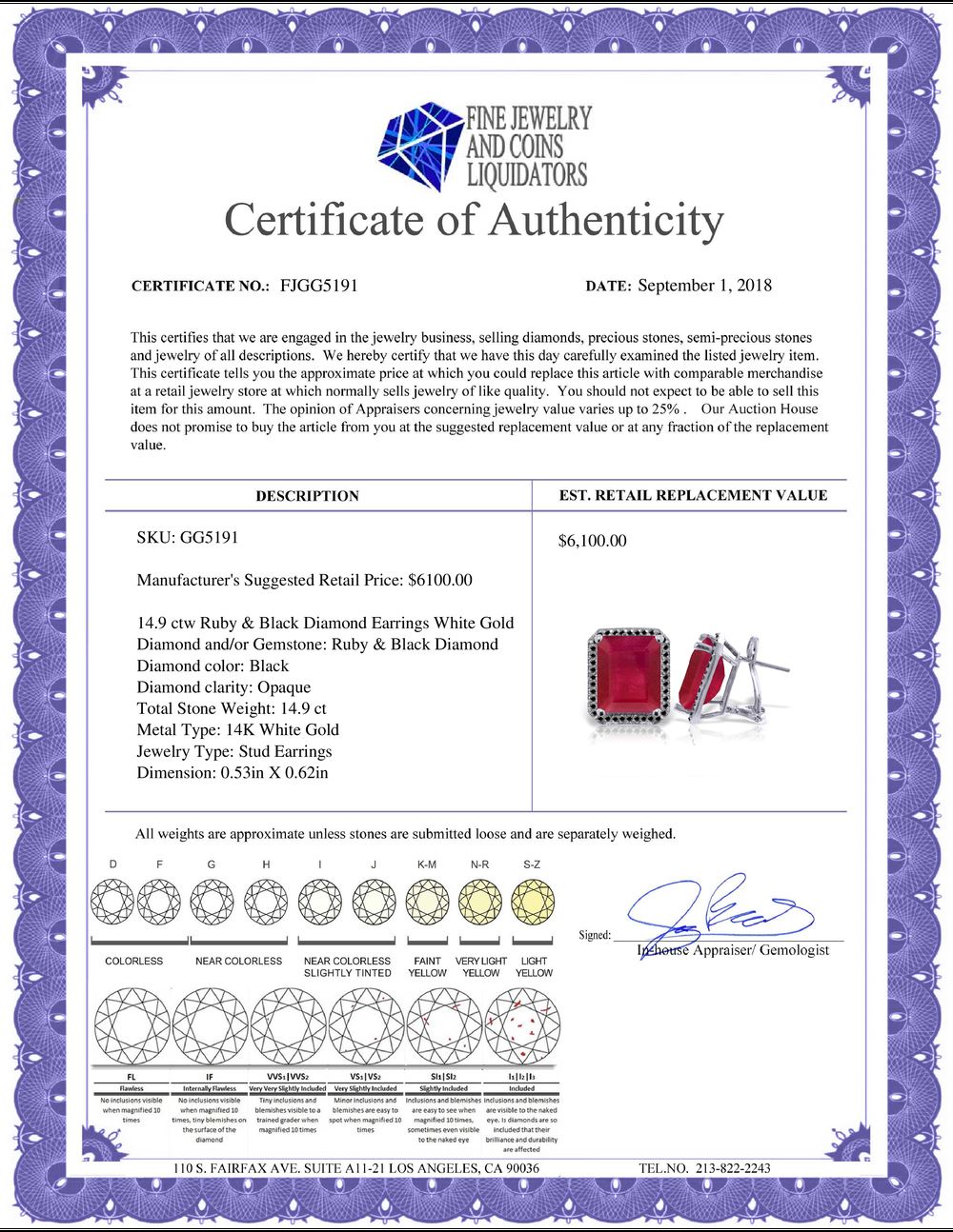 All Gia and EGL Diamonds are subject to availability due to consignors’ terms with us.