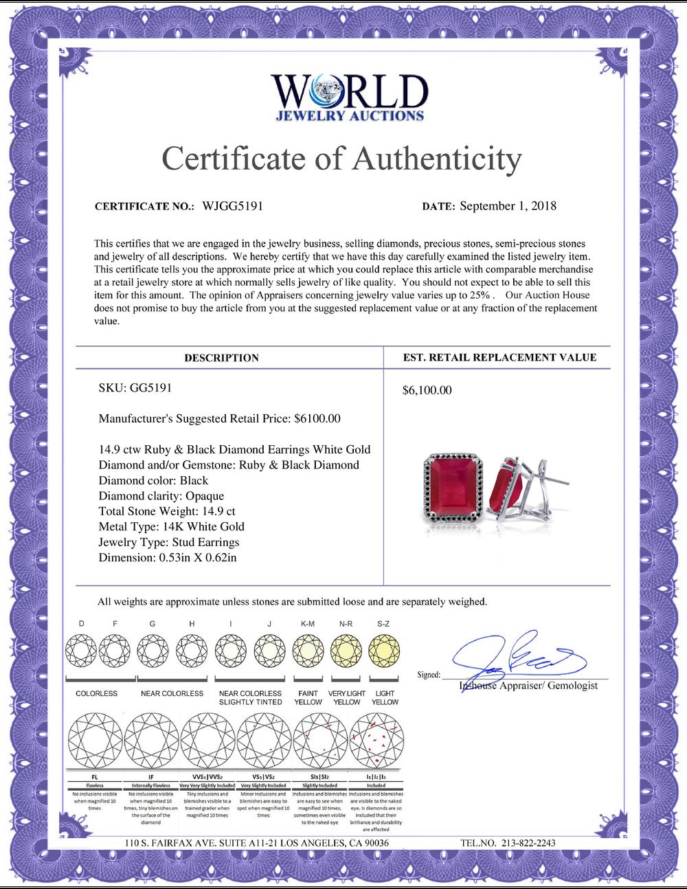 REF-201T5A - SKU: GG5191 ---- Genuine 14.9 ctw Ruby & Black Diamond Earrings 14KT White Gold