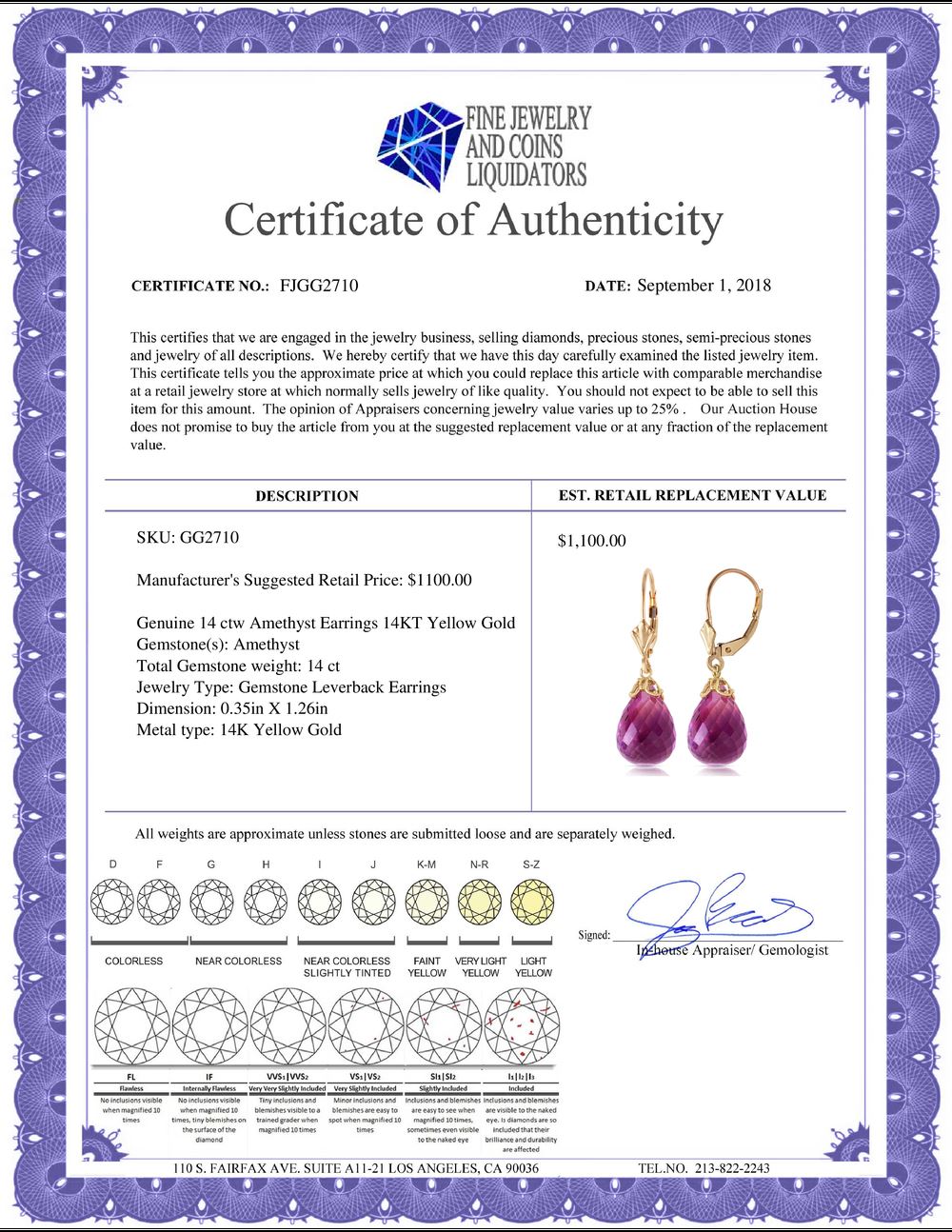 Genuine 14K Yellow Gold 14 ctw Amethyst Earrings