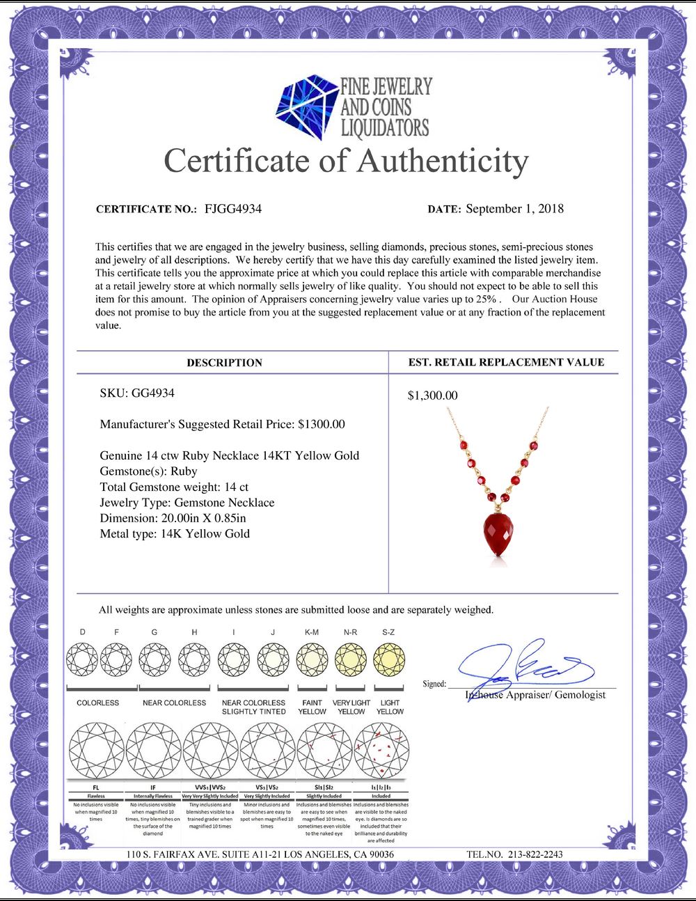 REF-42H2X - SKU: GG4934 ---- Genuine 14 ctw Ruby Necklace 14KT Yellow Gold