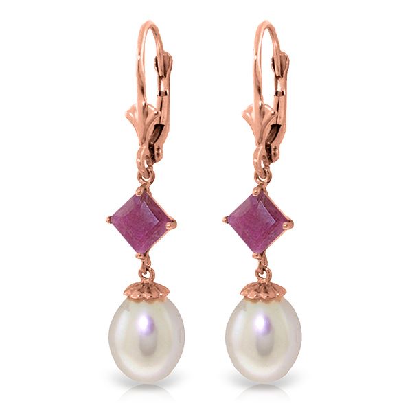 One gemologically tested 14KT Rose Gold 9.5 ctw Pearl & Ruby Earrings ---- Mounted stone(s): Pearl & Ruby ---- Total Gemstone weight: 9.5 ct ---- Jewelry type: Gemstone Leverback Earrings ---- Jewelry Dimension: 0.32in (8.1mm) x 1.41in (35.8mm) ---- Metal type: 14KT Rose Gold ----- Product - SKU#-JGG92467