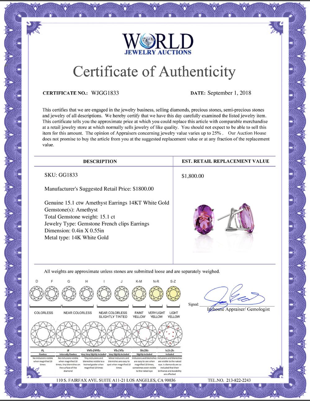 WORLD JEWELRY AUCTION believes to the best of its knowledge that the information presented in any listing has come from reliable sources. Such information is presented solely for the convenience of the Purchaser. WJA makes no warranties of any kind related to the information presented in any listing. WJA further makes no warranties, either express or implied, relating to the value, marketability or condition of the lot described in any listing. Prospective bidders should investigate a lot thoroughly before bidding. By bidding the Bidder acknowledges that Bidder has investigated the lot to his or her satisfaction, or, that Bidder has chosen not to do so, and agrees to accept the lot being bid on with no objections after the sale closes. If you are uncertain please contact us with your questions prior to bidding. If you are still uncertain after we reply, please refrain from bidding. Photos other graphic material contained in any listing of generic or duplicate lots may be stock presentations and not necessarily of the specific lot.