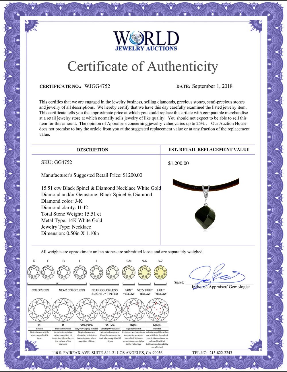 REF-39Z2N - SKU: GG4752 ---- Genuine 15.51 ctw Black Spinel & Diamond Necklace 14KT White Gold