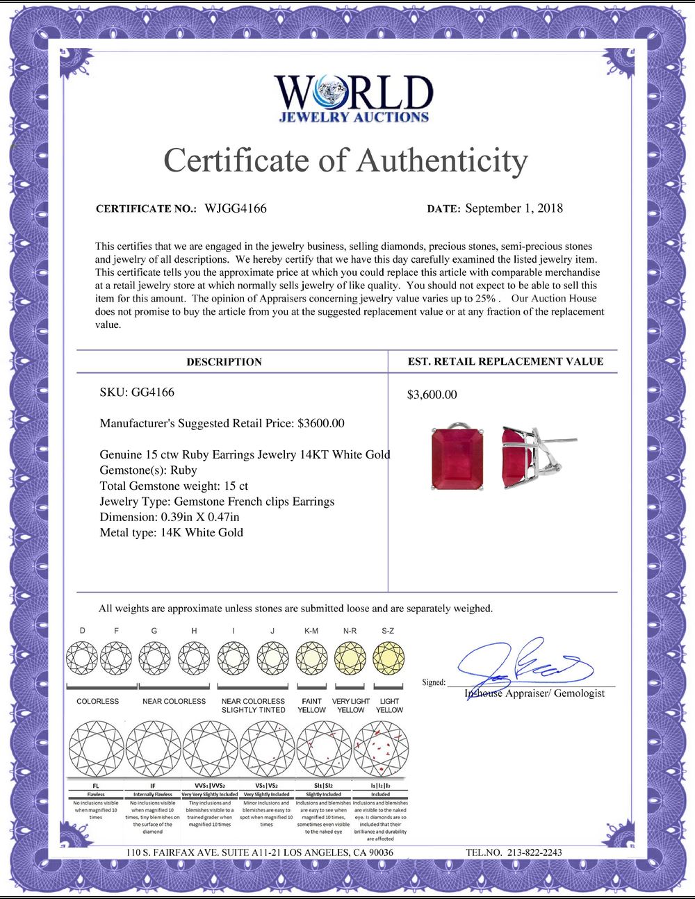 WORLD JEWELRY AUCTION believes to the best of its knowledge that the information presented in any listing has come from reliable sources. Such information is presented solely for the convenience of the Purchaser. WJA makes no warranties of any kind related to the information presented in any listing. WJA further makes no warranties, either express or implied, relating to the value, marketability or condition of the lot described in any listing. Prospective bidders should investigate a lot thoroughly before bidding. By bidding the Bidder acknowledges that Bidder has investigated the lot to his or her satisfaction, or, that Bidder has chosen not to do so, and agrees to accept the lot being bid on with no objections after the sale closes. If you are uncertain please contact us with your questions prior to bidding. If you are still uncertain after we reply, please refrain from bidding. Photos other graphic material contained in any listing of generic or duplicate lots may be stock presentations and not necessarily of the specific lot.