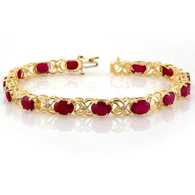 Gemstone: Ruby ; Diamond Clarity: SI1-SI2 ; Diamond Color: H-J ; Metal Purity: 10KT ; Metal: Yellow ; Weight(g): 9.3 ; Diamond Count:5 Round Cut ; Gemstone Cut: 14 Ovalcut ; Gemstone Weight: 16.02 ; Size/Dimension: Approx. Dim. 7"