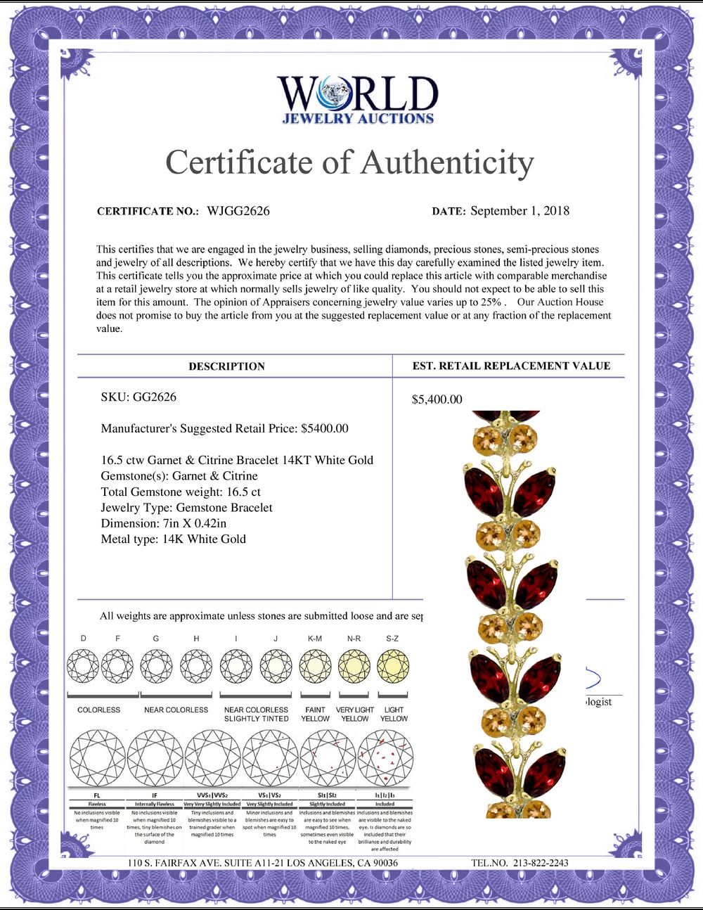 REF-179H2X - SKU: GG2626 ---- Genuine 16.5 ctw Garnet & Citrine Bracelet 14KT White Gold