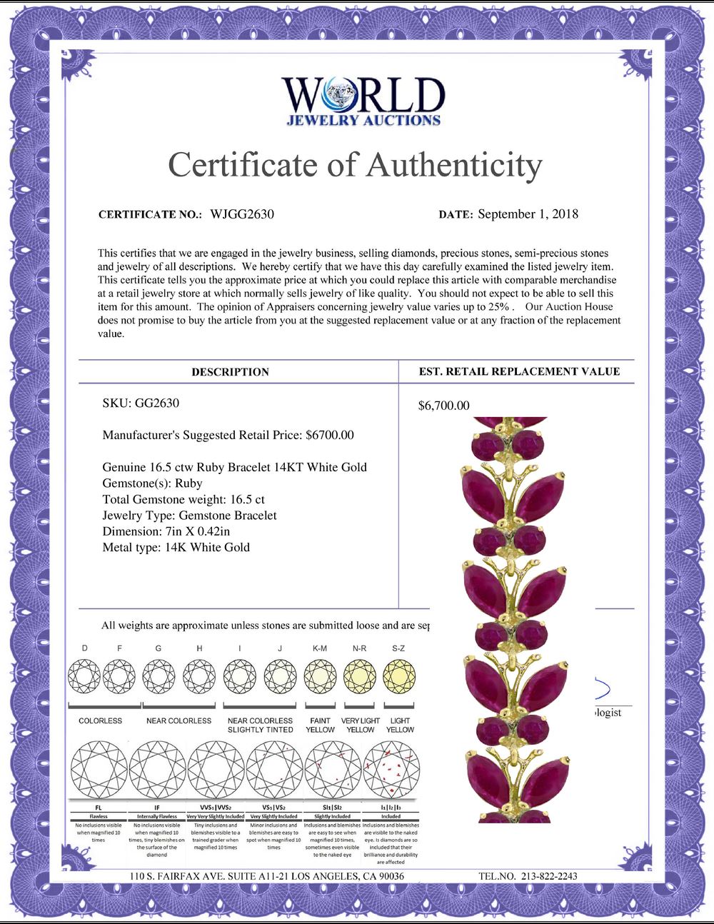 REF-221W3Y - SKU: GG2630 ---- Genuine 16.5 ctw Ruby Bracelet 14KT White Gold