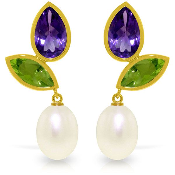 REF-45X7M ---- SKU:GG-3469 ---- Manufacturer's Suggested Retail Price: $1400.00 ---- Genuine 14K Yellow Gold 16.6 ctw Pearl, Peridot & Amethyst Earrings