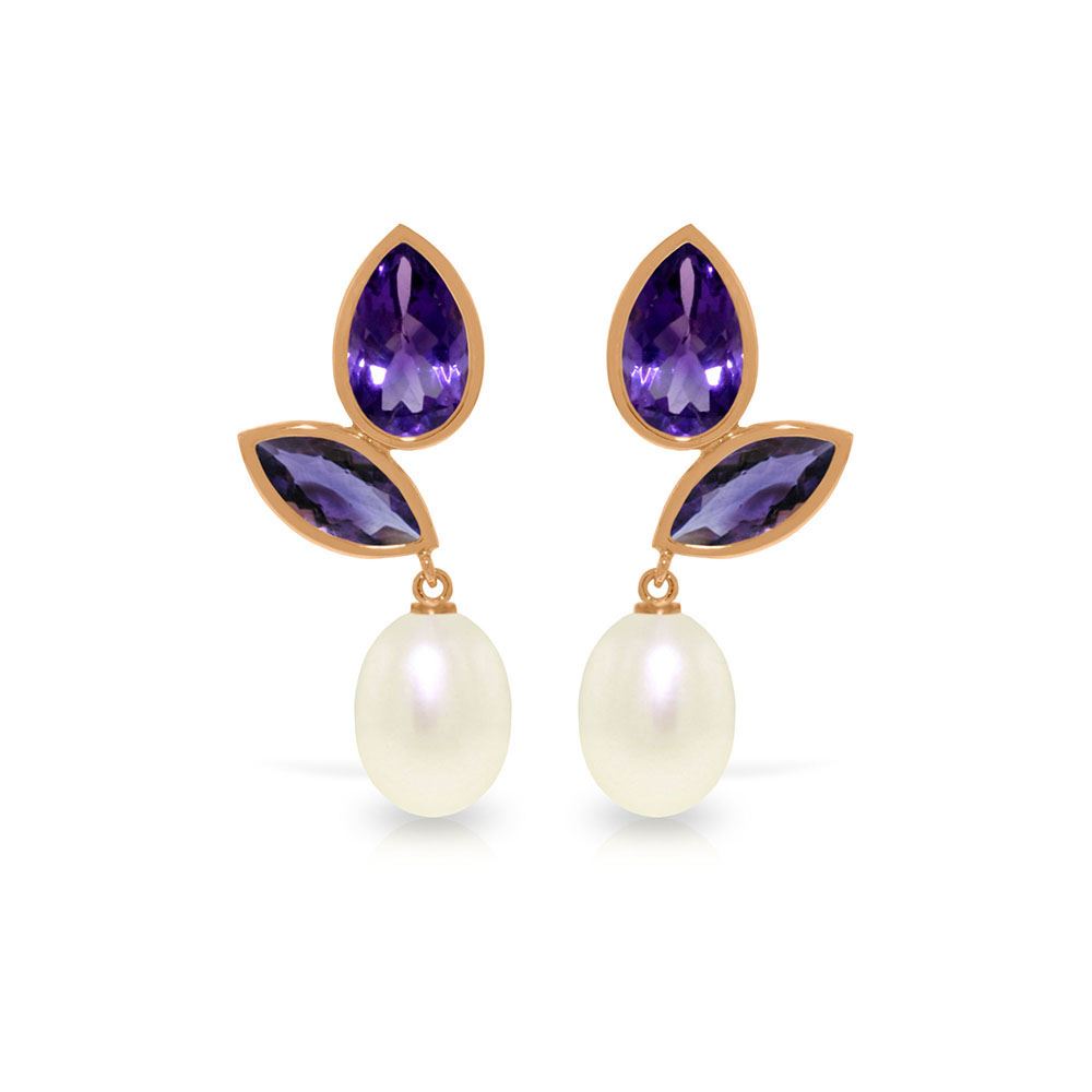 Genuine 14K Rose Gold 16 ctw Pearl & Amethyst Earrings