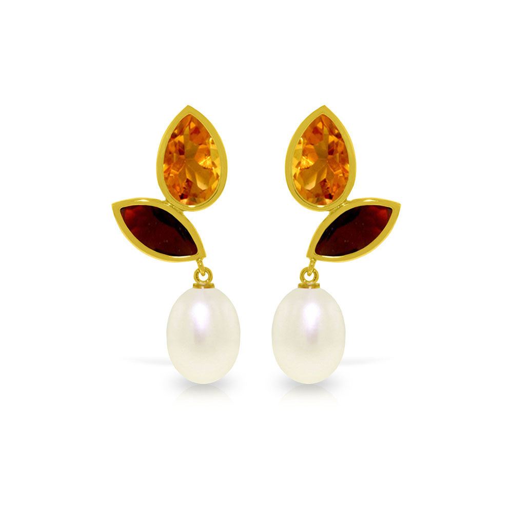 Genuine 14K Yellow Gold 16 ctw Pearl, Garnet & Citrine Earrings