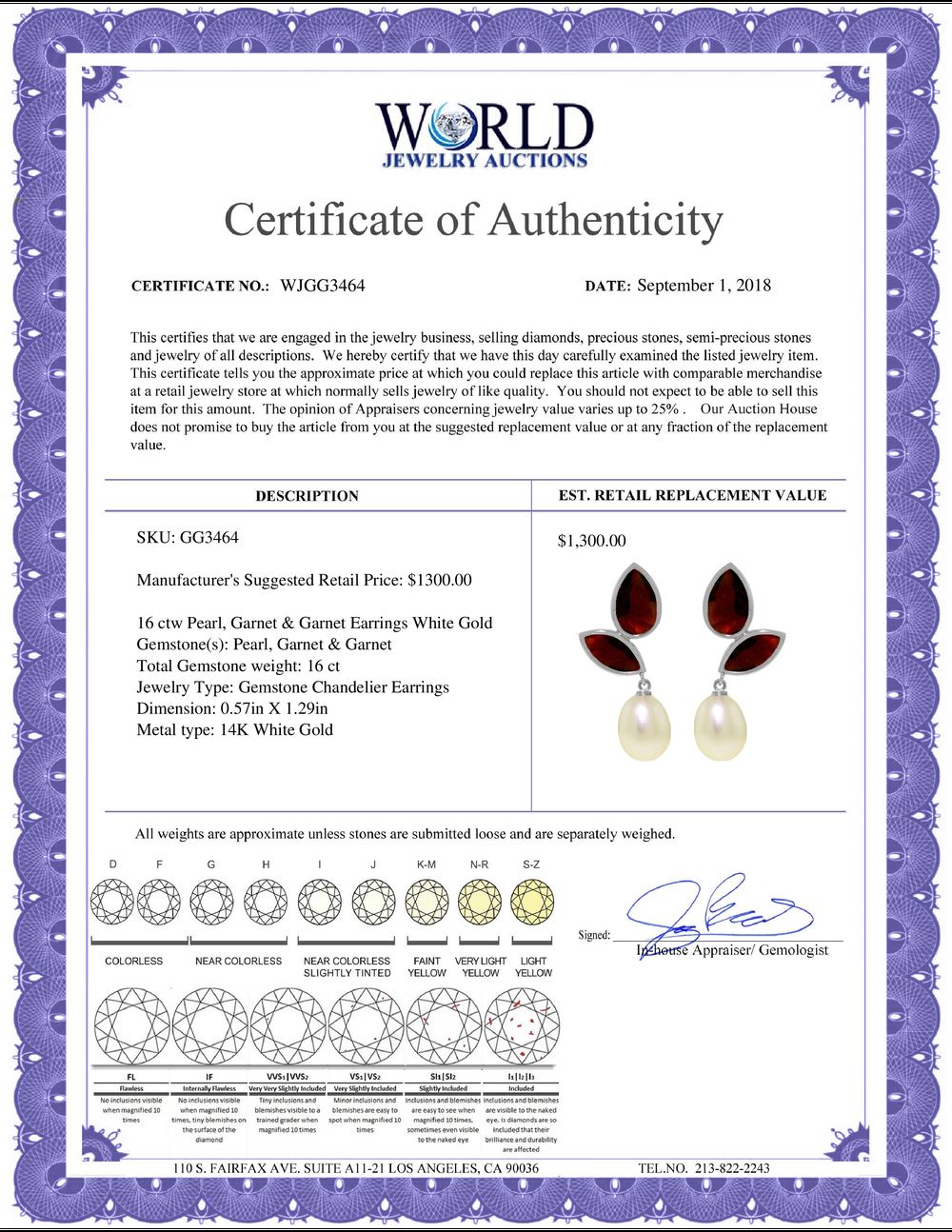 REF-42Z2N - SKU: GG3464 ---- Genuine 16 ctw Pearl, Garnet & Garnet Earrings 14KT White Gold