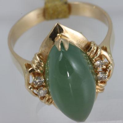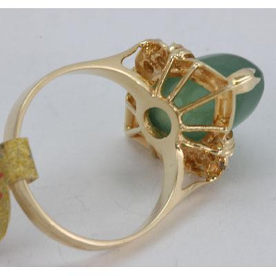 Gemstone: 16X8MM Green Jade ; Gemstone Color: Oval Cushion ; Dimension: 16X8MM ; Metal Purity: 14KT ; Metal: Gold-Yellow ; Ring Size: 7