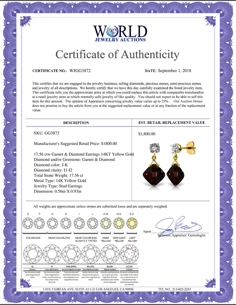 All Gia and EGL Diamonds are subject to availability due to consignors’ terms with us.