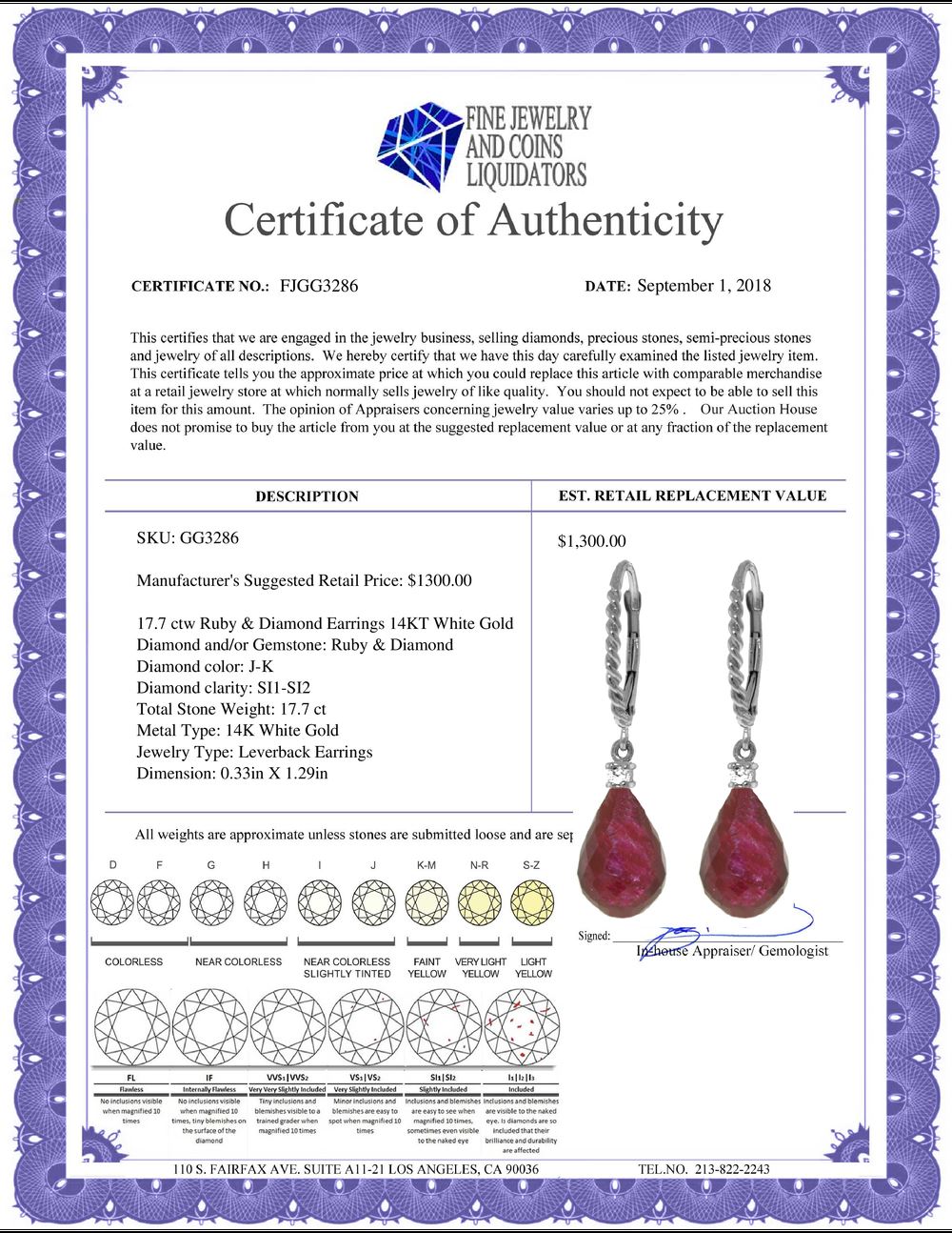 All Gia and EGL Diamonds are subject to availability due to consignors’ terms with us.
