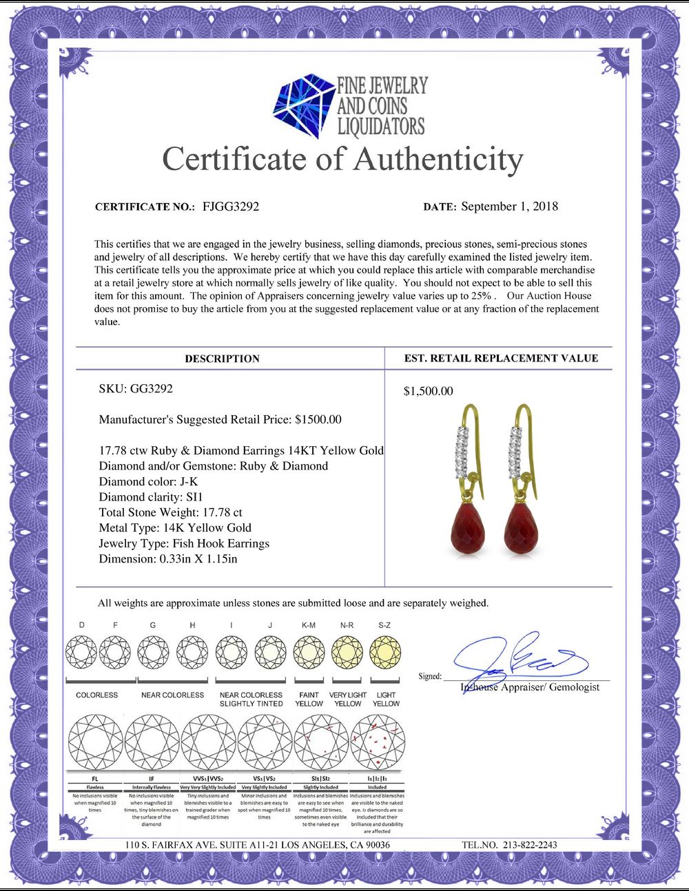 All Gia and EGL Diamonds are subject to availability due to consignors’ terms with us.