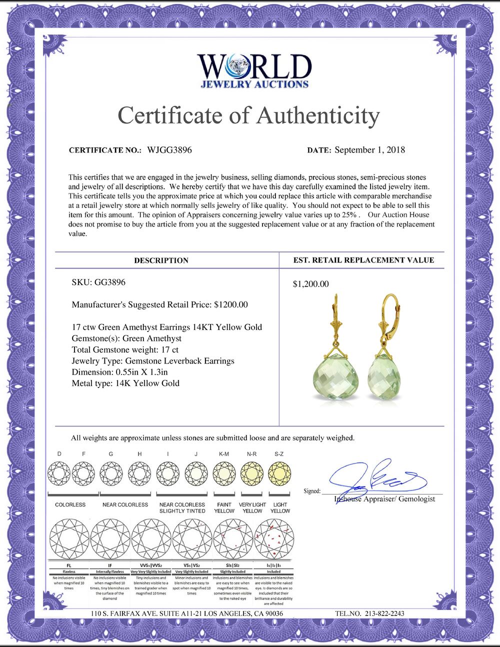 Genuine 14K Yellow Gold 17 ctw Green Amethyst Earrings