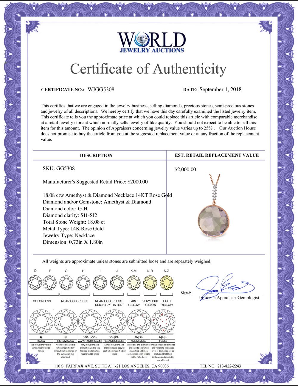 REF-65N8R - SKU: GG5308 ---- Genuine 18.08 ctw Amethyst & Diamond Necklace 14KT Rose Gold