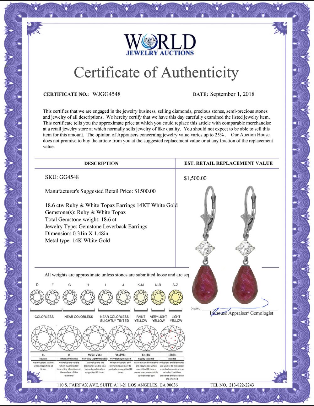 REF-46V7W - SKU: GG4548 ---- Genuine 18.6 ctw Ruby & White Topaz Earrings 14KT Rose Gold