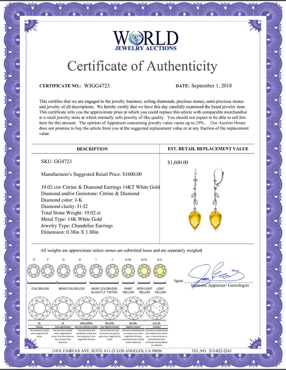 Genuine 14K White Gold 19.02 ctw Citrine & Diamond Earrings