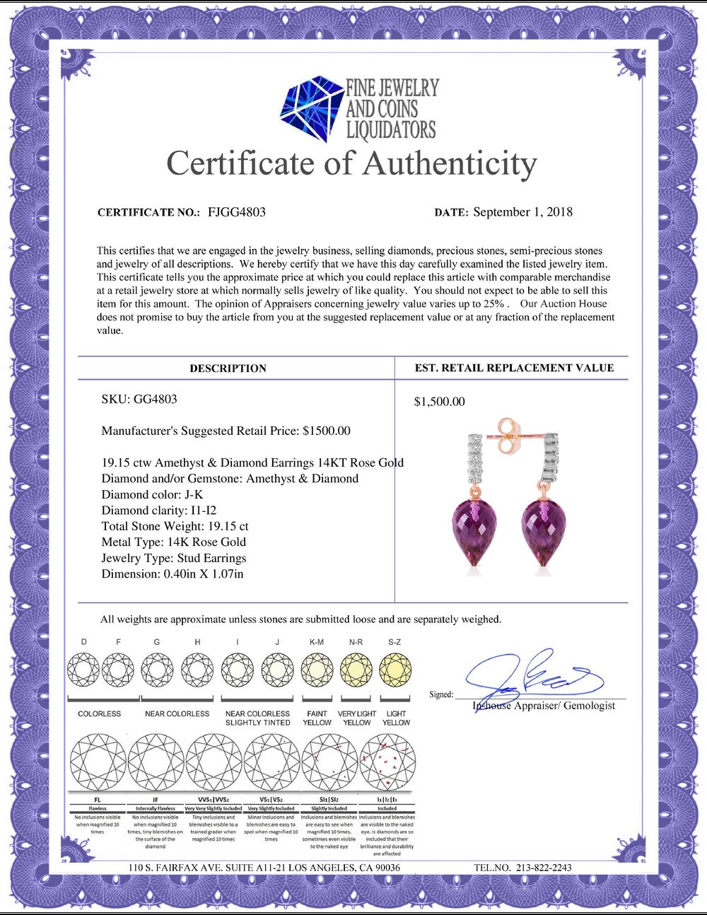 REF-47V4W - SKU: GG4803 ---- Genuine 19.15 ctw Amethyst & Diamond Earrings 14KT White Gold