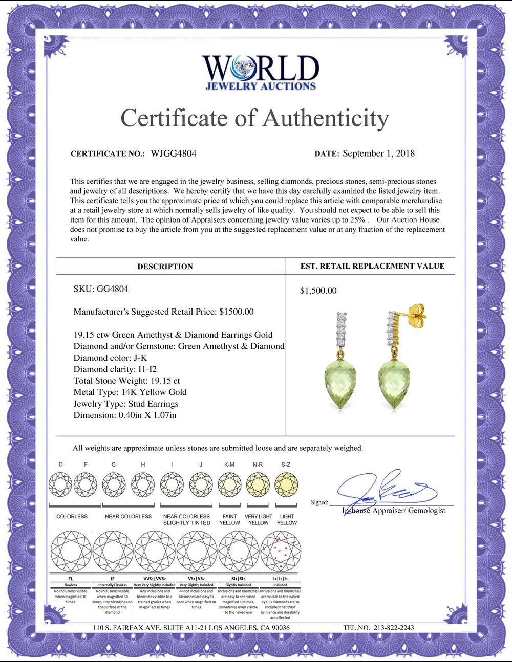 REF-47H4X - SKU: GG4804 ---- Genuine 19.15 ctw Green Amethyst & Diamond Earrings 14KT Rose Gold