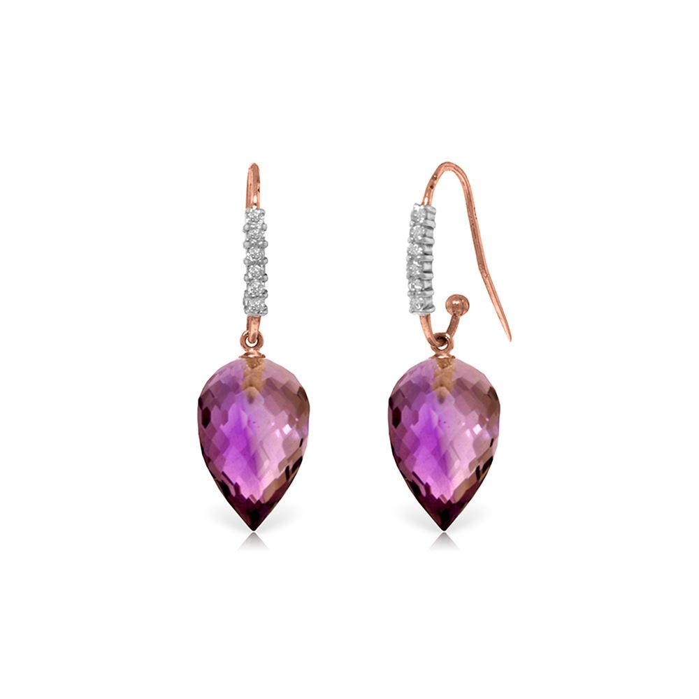 Genuine 14K Rose Gold 19.18 ctw Amethyst & Diamond Earrings