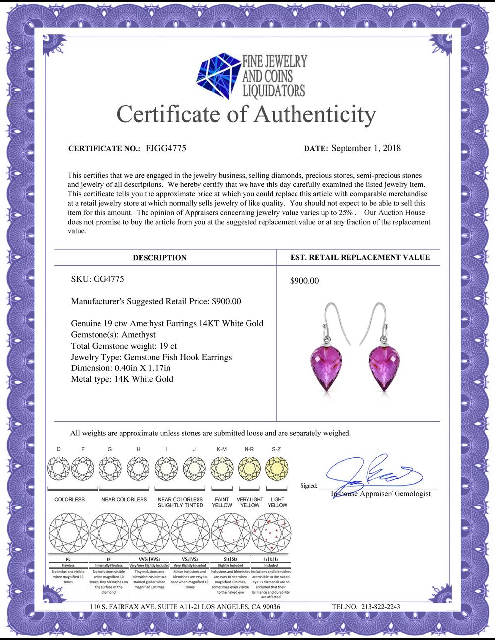 REF-28R4P - SKU: GG4775 ---- Genuine 19 ctw Amethyst Earrings 14KT White Gold