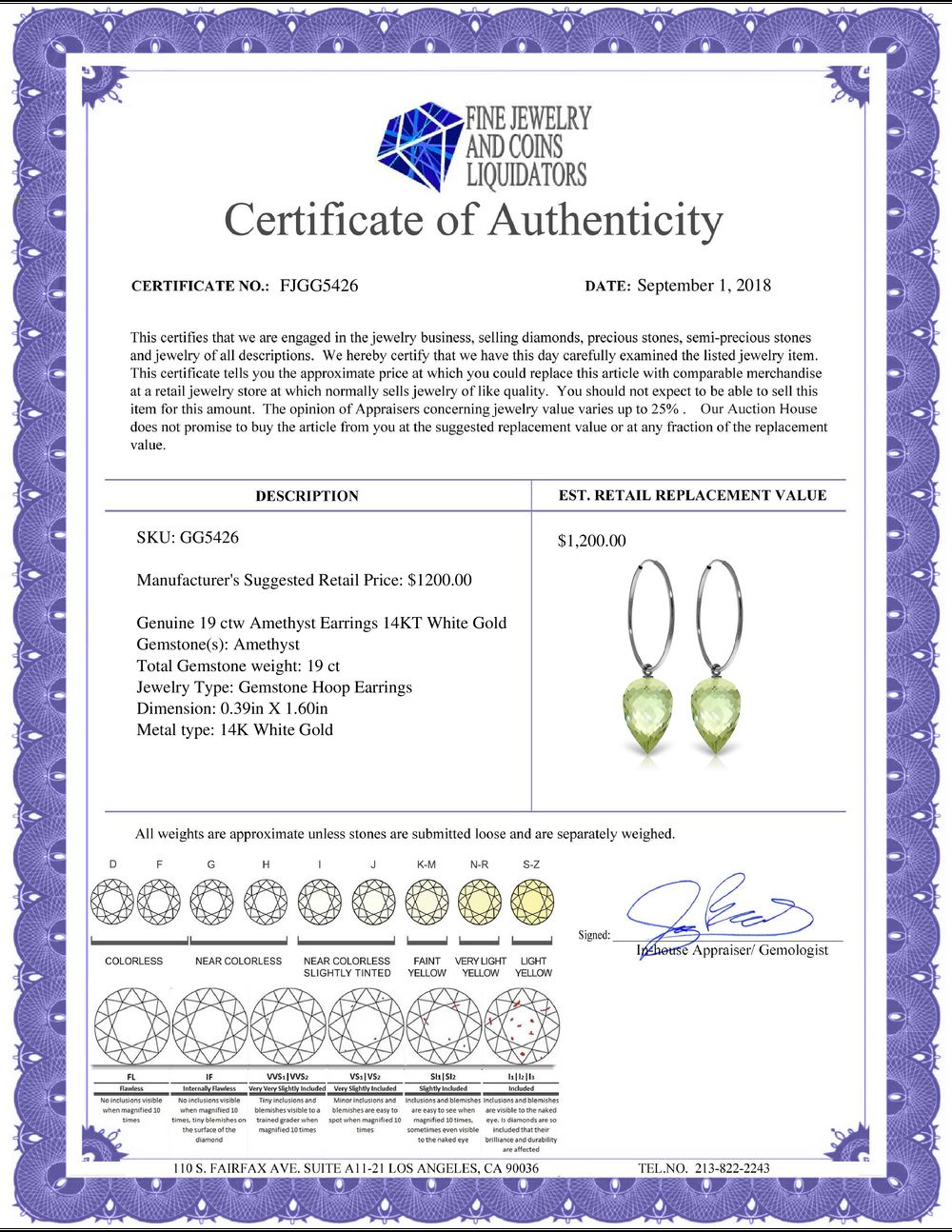 All Gia and EGL Diamonds are subject to availability due to consignors’ terms with us.