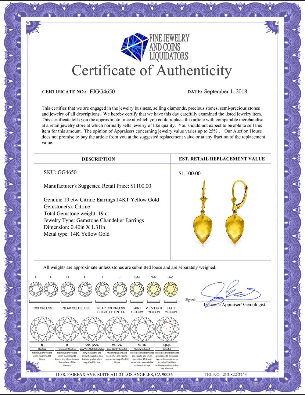 REF-35P9H - SKU: GG4650 ---- Genuine 19 ctw Citrine Earrings 14KT Yellow Gold