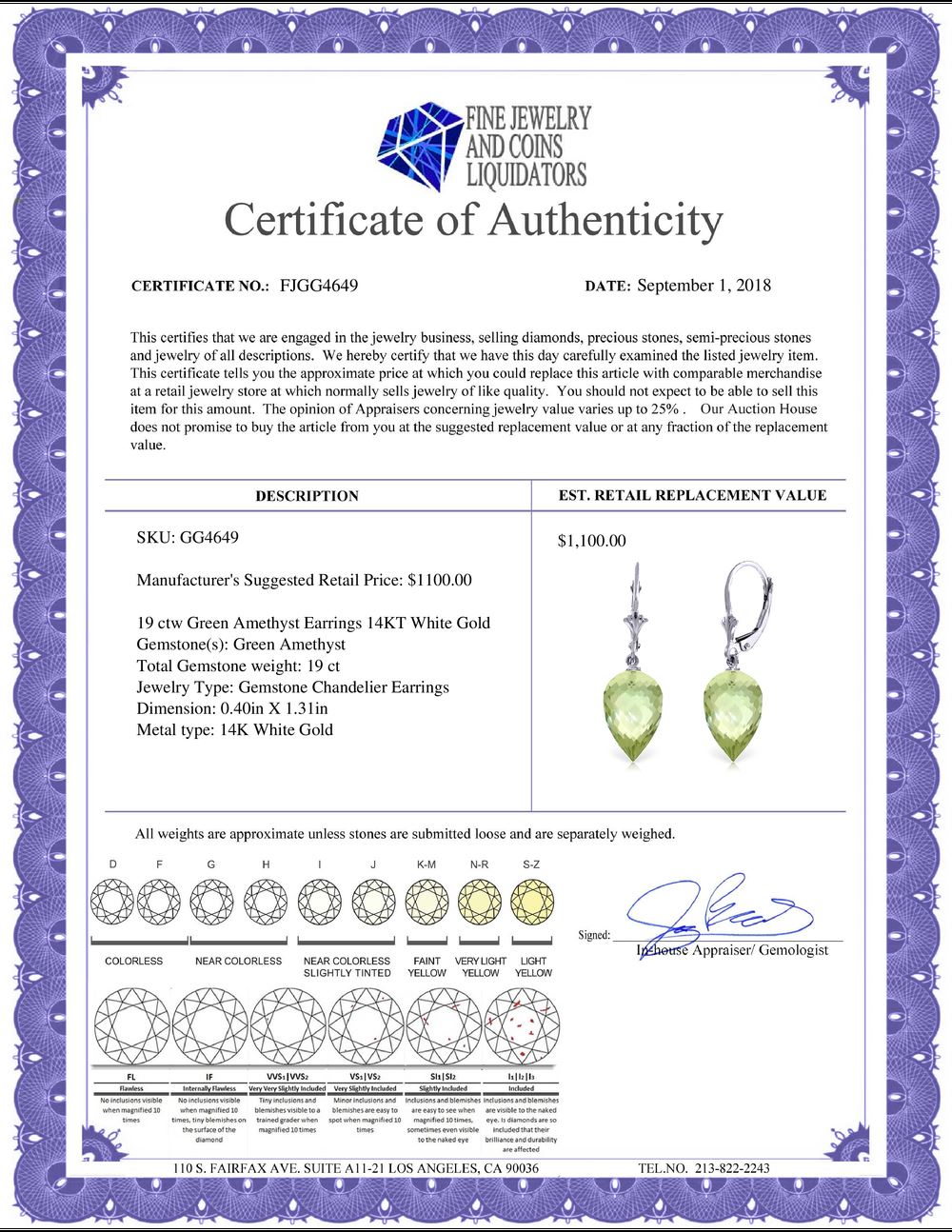 REF-35M9T - SKU: GG4649 ---- Genuine 19 ctw Green Amethyst Earrings 14KT Rose Gold
