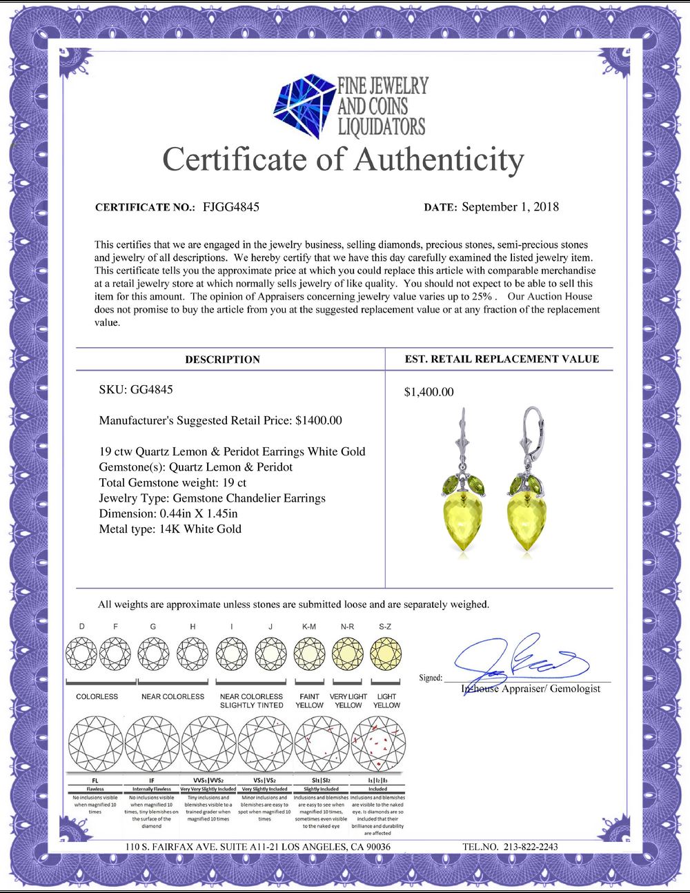 REF-45V7W - SKU: GG4845 ---- Genuine 19 ctw Quartz Lemon & Peridot Earrings 14KT White Gold
