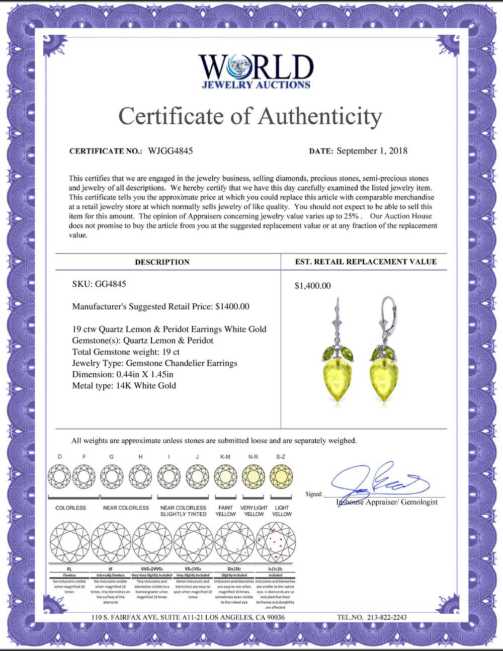 REF-45V7W - SKU: GG4845 ---- Genuine 19 ctw Quartz Lemon & Peridot Earrings 14KT White Gold