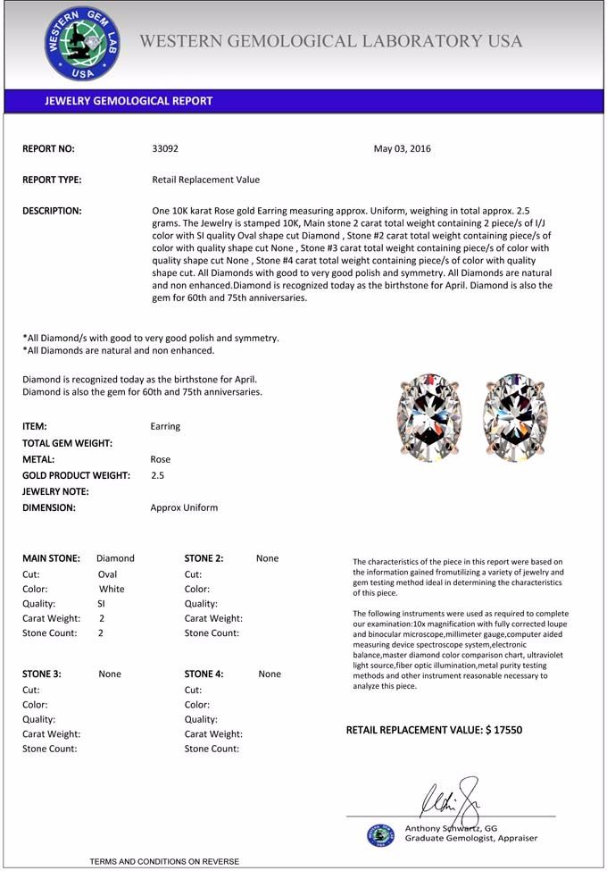SI quality Oval shape cut Diamond , Stone #2 carat total weight containing piece/s of color with quality