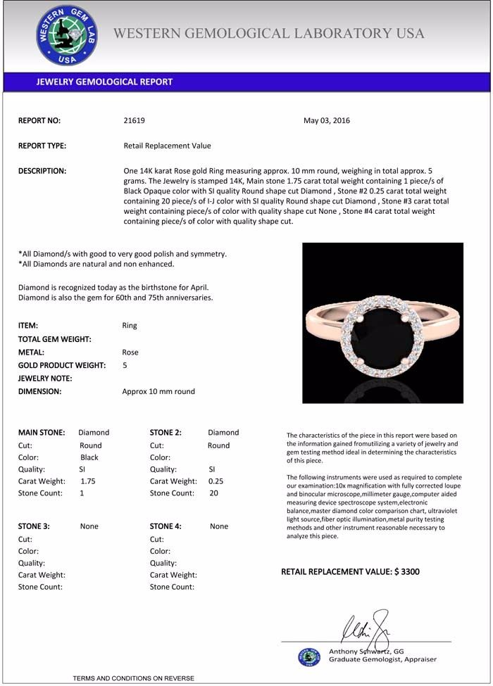 total approx. 5 grams. The Jewelry is stamped 14K, Main stone 1.75 carat total weight containing 1 piece/s of Black Opaque color with