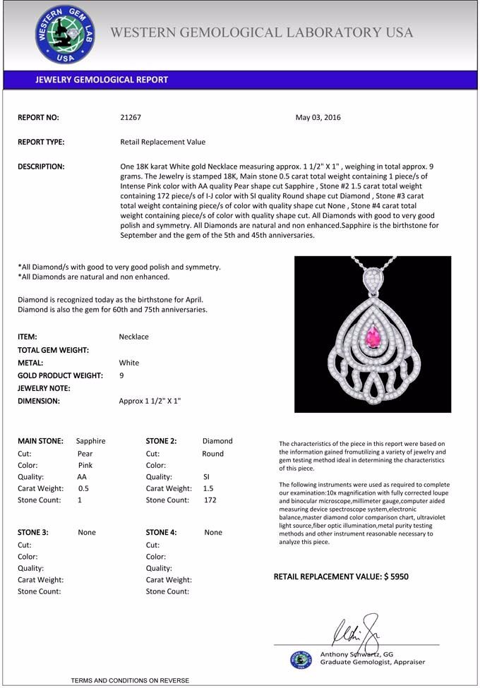 DESCRIPTION OF ARTICLE: One 18K karat White gold Necklace measuring approx. 1 1/2" X 1" , weighing in