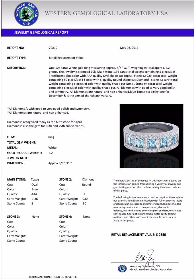 Blue Topaz is a birthstone for December & is the gem of the 4th anniversary.