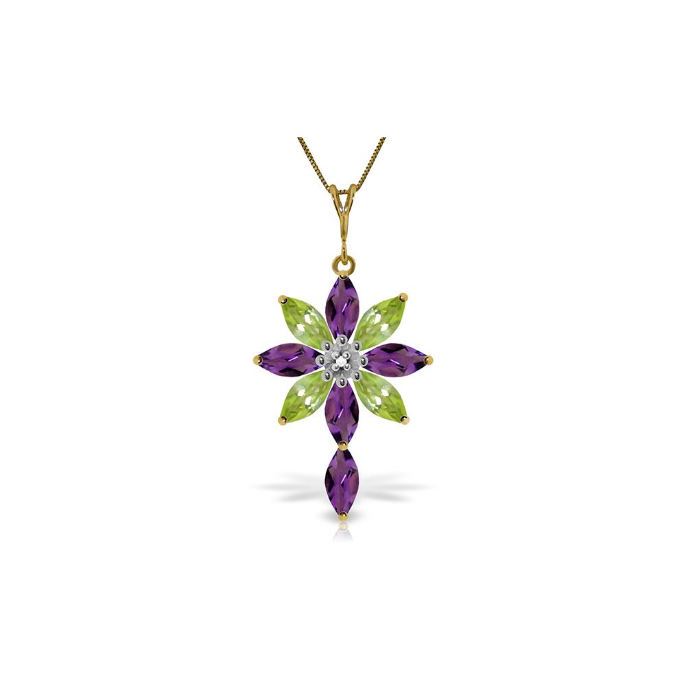 Genuine 14K Yellow Gold 2.0 ctw Amethyst, Peridot & Diamond Necklace