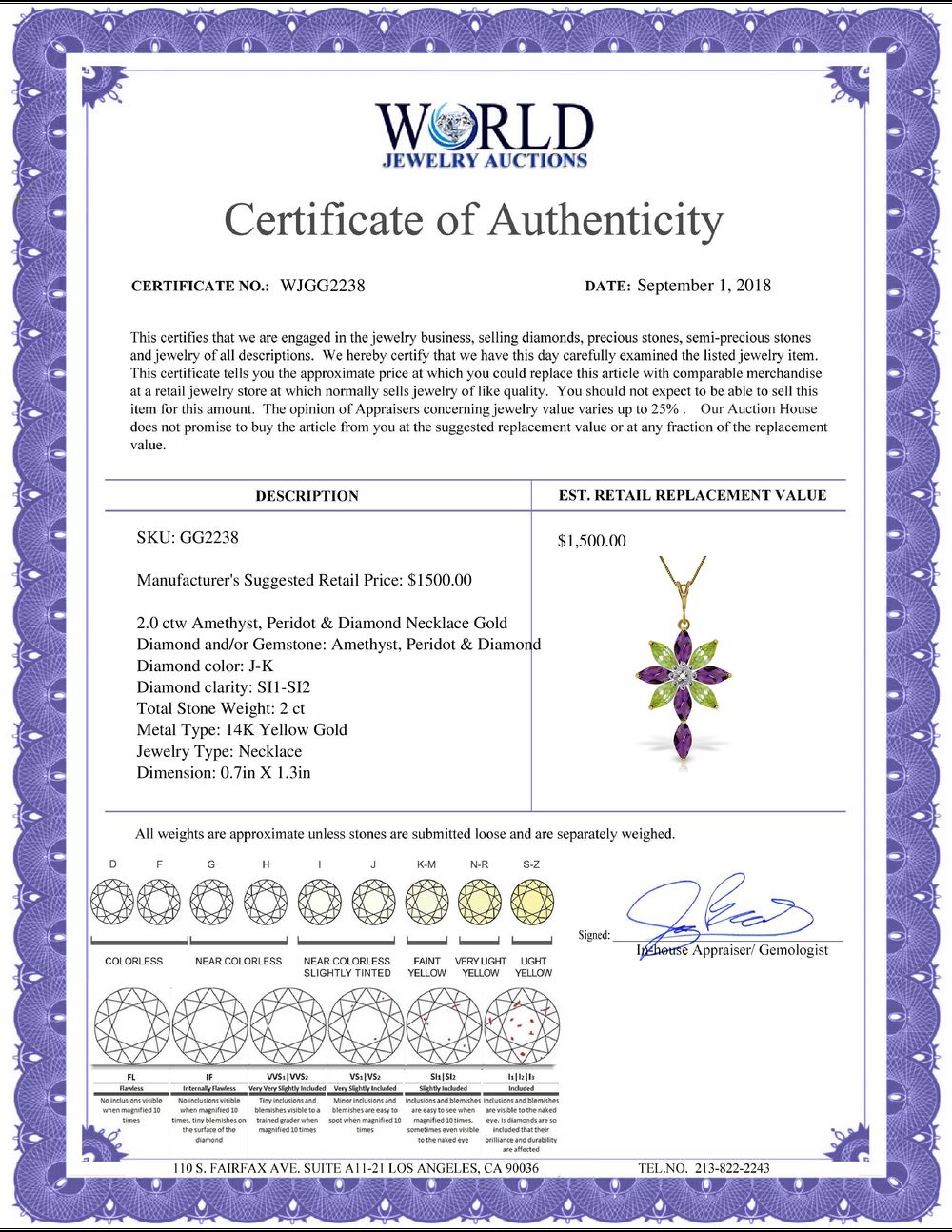 REF-47Y4F - SKU: GG2238 ---- Genuine 2.0 ctw Amethyst, Peridot & Diamond Necklace 14KT Yellow Gold