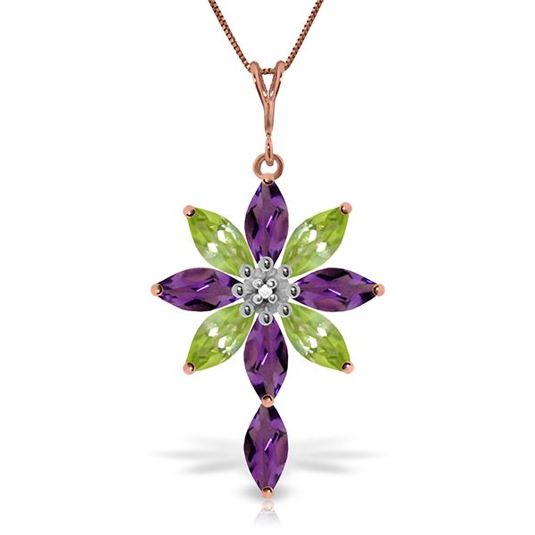 Genuine 2.0 ctw Amethyst, Peridot & Diamond Necklace Jewelry 14KT Rose Gold - REF-47A4K
