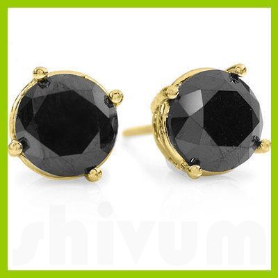 Genuine 2.0 ctw Black Diamond Stud Earrings 14kt **|**|** Earring Black Diamond AABlack - OpaqueRound 2 Round Cut @2.0 ctw 214ktYellow ; Availability: 3-10 Business days, ready to ship, with certification of appraisal will take 2 weeks. ; MSRP: $1200
