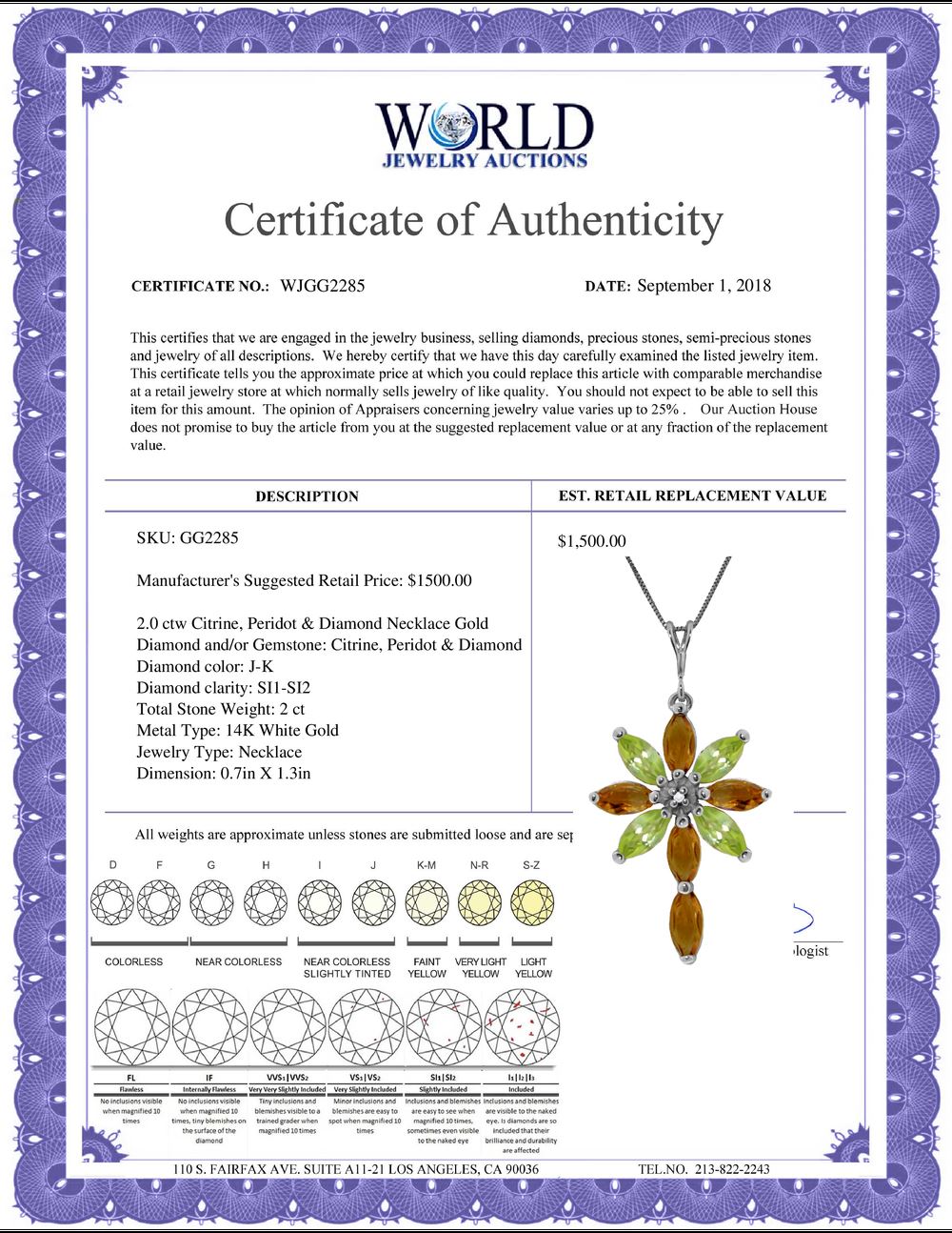 SKU: GG2285 ---- Genuine 2.0 ctw Citrine, Peridot & Diamond Necklace 14KT White Gold