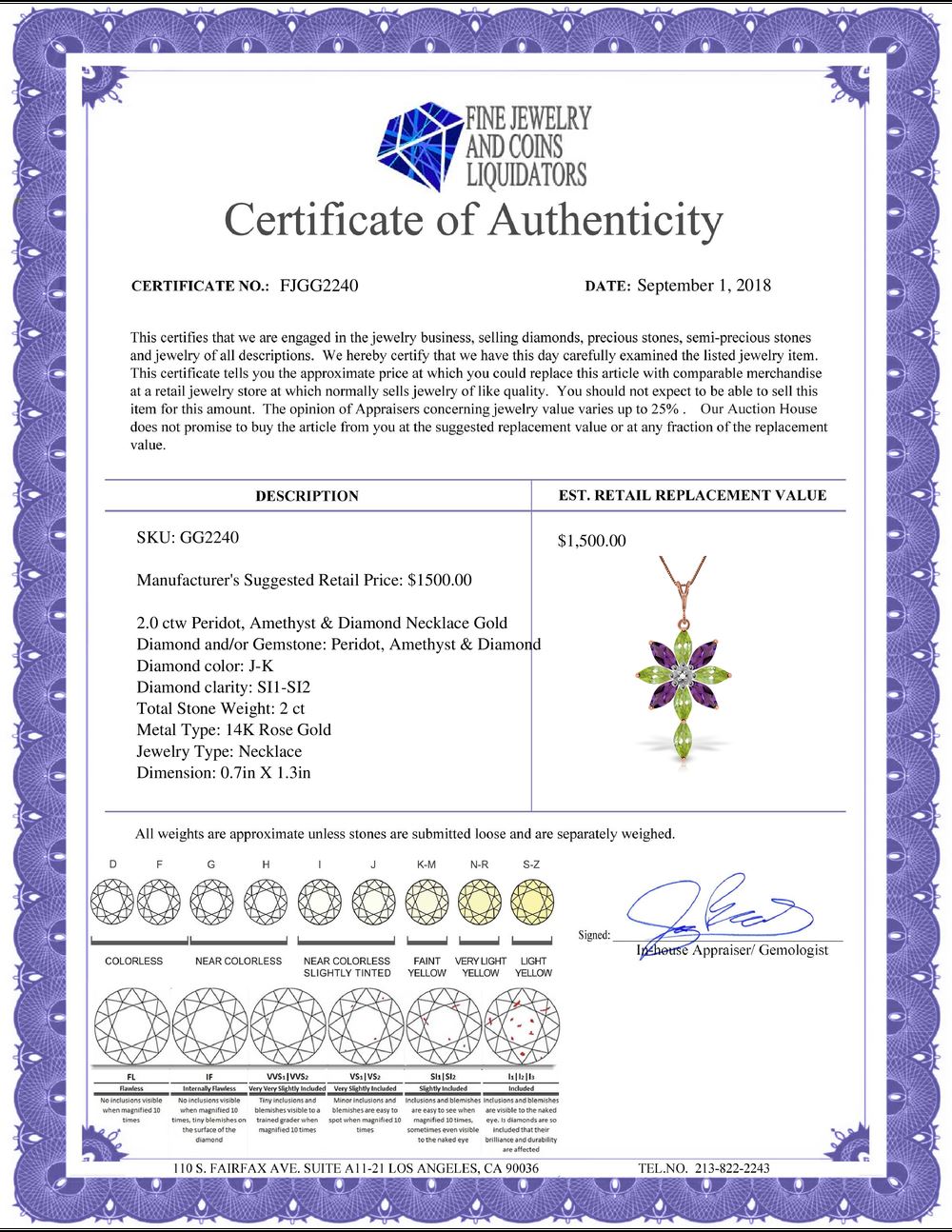 REF-47R4P - SKU: GG2240 ---- Genuine 2.0 ctw Peridot, Amethyst & Diamond Necklace 14KT Rose Gold