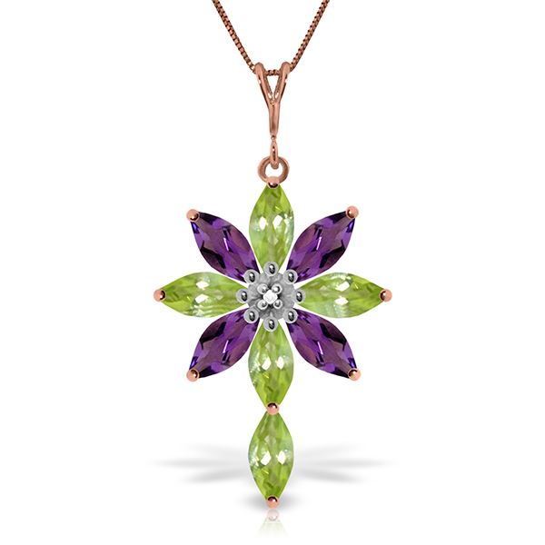 REF-47R4P ---- SKU:GG-2240 ---- Manufacturer's Suggested Retail Price: $1500.00 ---- Genuine 14K Rose Gold 2.0 ctw Peridot, Amethyst & Diamond Necklace