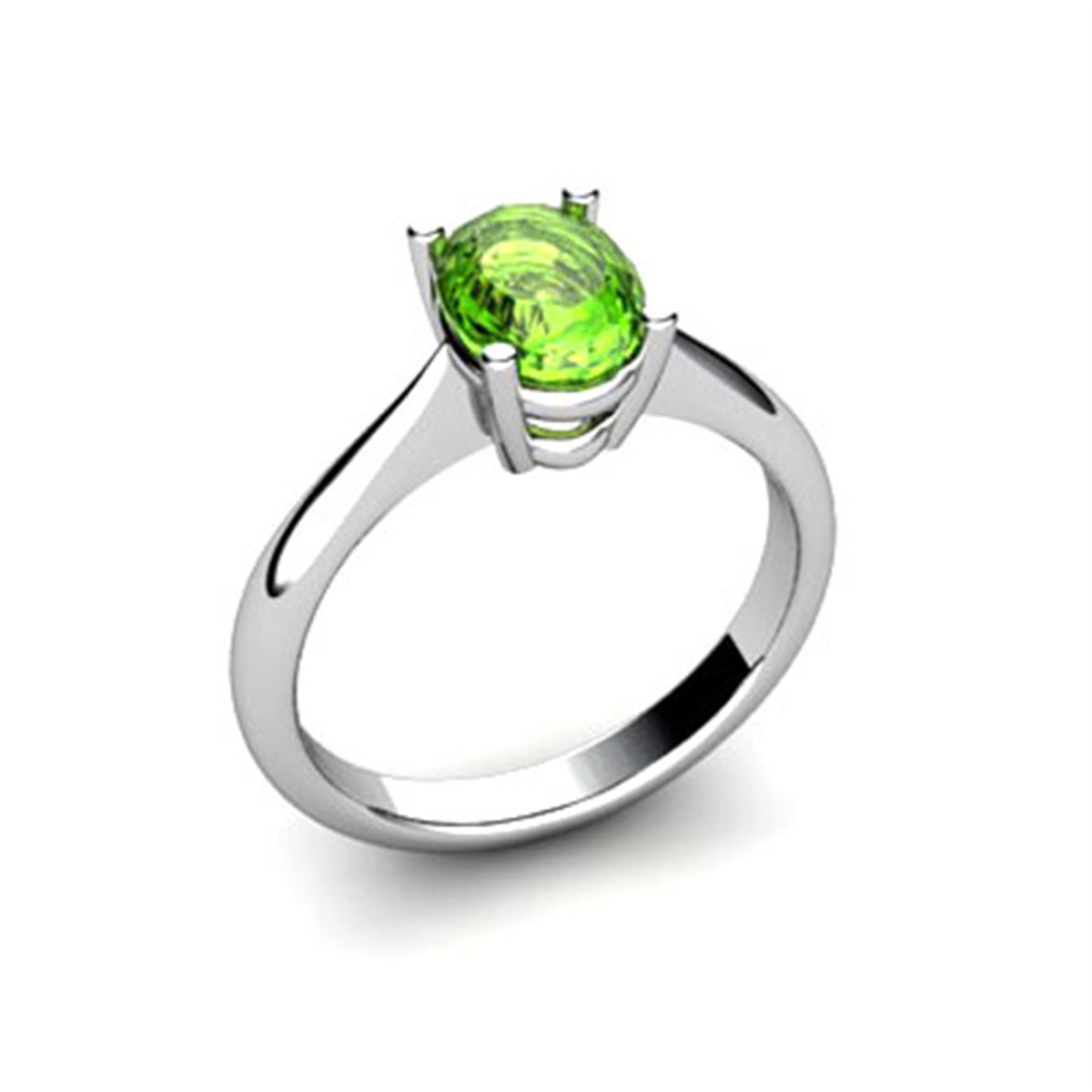 Total CTW: 2 ; Mainstone: Peridot ; Metal Purity: 18kt ; Metal: White or Yellow Gold ; Gem Count: 1 Oval Cut ; Gem Size(mm): approx. 8x6mm ; Gem / Clarity: AA-AAA ; Ring Size: 6.5 ; Weight(g): 3.25 ; MSRP: $959